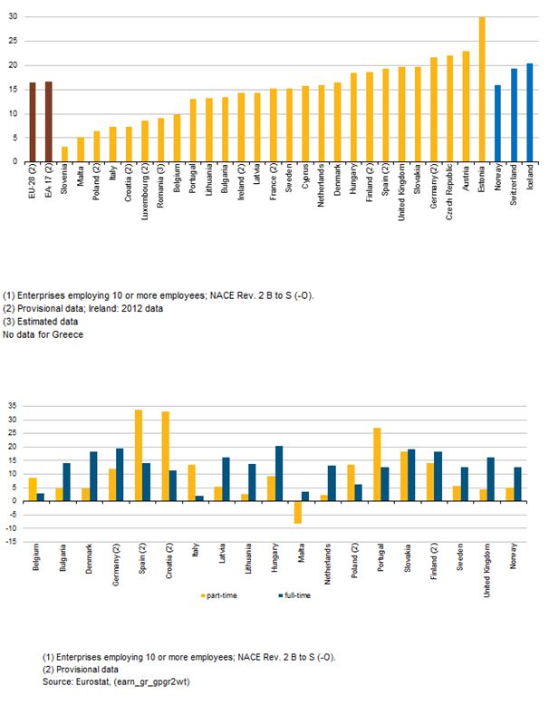 A női foglalkoztatottak között igen magas a részmunkaidősök aránya néhány országban, amit a keresetek értékelésénél figyelembe kell venni, bár országok között is elég jelentős különbségek lelhetők fel. Míg Hollandiában pl igen magas a nők részmunkaidős foglalkoztatása, nálunk viszonylag alacsony bár növekvő tendenciát mutat, különösen a nemrég nyugdíjba ment nők körében.