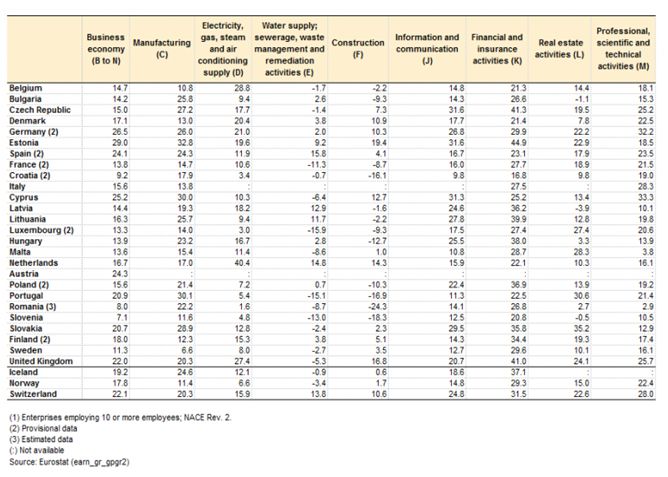 A public szektorban levő egyenlő bérezésre, Belgium, Ciprus ,de Szlovénia is kedvező példát mutatnak.