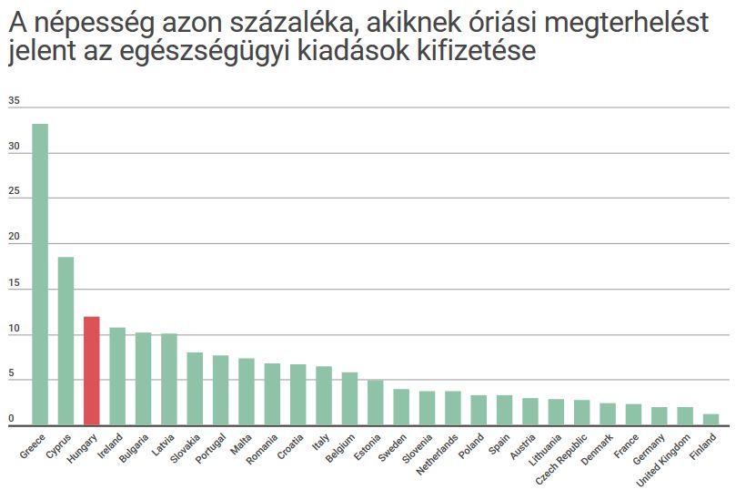 Külön érdeke, hogy önbevallásos alapon Magyarország abban is kiugró, hogy itt a népesség 12 százalékának okoz a lehető legnagyobb, vagyis igen komoly nagy gondokat az egészségügyi ráfordítások kifizetése.