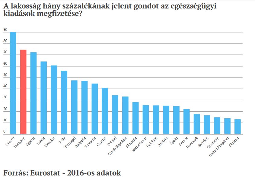 Nem állunk túl jól az egészségügy terén egyébként se, most kijöttek az Eurostat adatai arról, hogy a magyarok 74 százalékának okoz nehézséget az, hogy megfizesse az egészségügyi szolgáltatások árát – olvasható az Indexen.