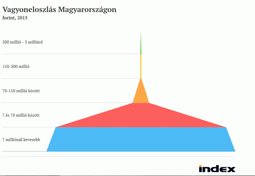 És nagyjából 5 százalékra tehető a 70 millió forint feletti vagyonnal rendelkezők köre, ami nagyjából 200 ezer háztartást jelent. 3 milliárd feletti vagyonnal pedig mindössze 150-200 háztartás rendelkezik Magyarországon.